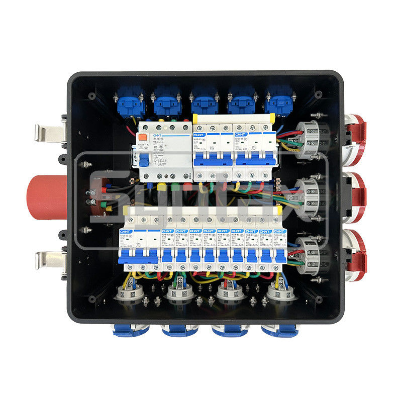 ربط هذه صناديق التوزيع المحمولة بمصدر طاقة، مثل مولد، لتزويد المعدات بالطاقة عندما لا تكون الكهرباء متاحة.مكسّرات الحماية لتقليل خطر الصدمة الكهربائية، والمعروفة أيضا باسم صناديق العنكبوت.