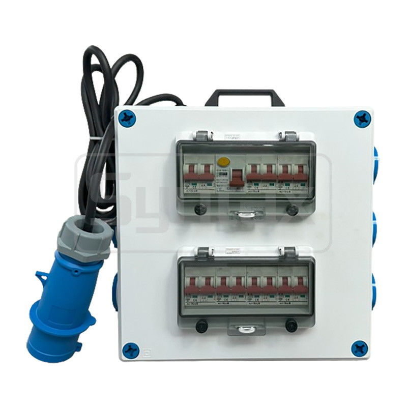 هذا المرحلة الواحدة 32 Amp مربع المقبس المحمول في الهواء الطلق هو خصيصا حسب الطلب من قبل العميل أن المفتاح الرئيسي من قبل MCB + RCD (يساوي RCBO) ، المقبسات المرحلة الواحدة مع شراع صغير من قبل 2 قطب MCBs.