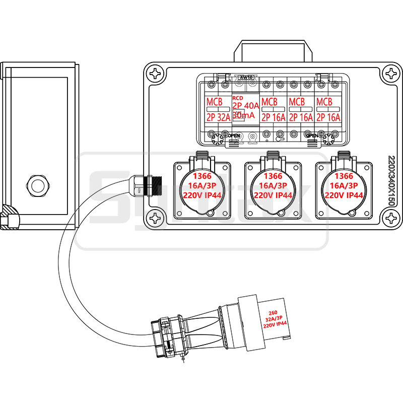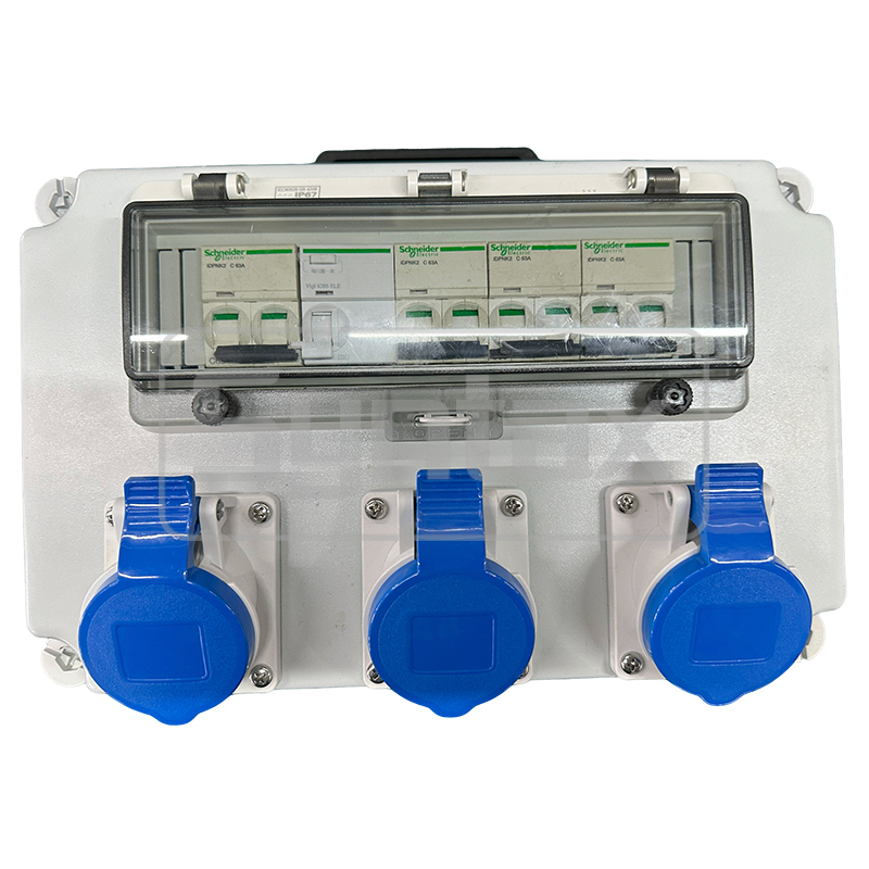 يتم تصنيع لوحة التوزيع المثبتة على الحائط ذات المرحلة الواحدة 32 AMP للاستخدام في الهواء الطلق من مادة PC ، ولها كابل تمديد 3C4mm2 1.5m مع 3P 32A 220v Plug ، محمية بواسطة MCB + RCCB.المقابس الخارجة هي لوحة مثبتة نوع مستقيم 3P 16A 220v IP44 المقابسجميع لوحات توزيع الطاقة مصنوعة حسب الطلب