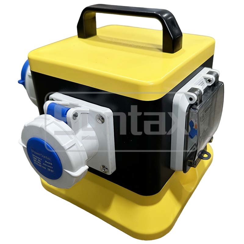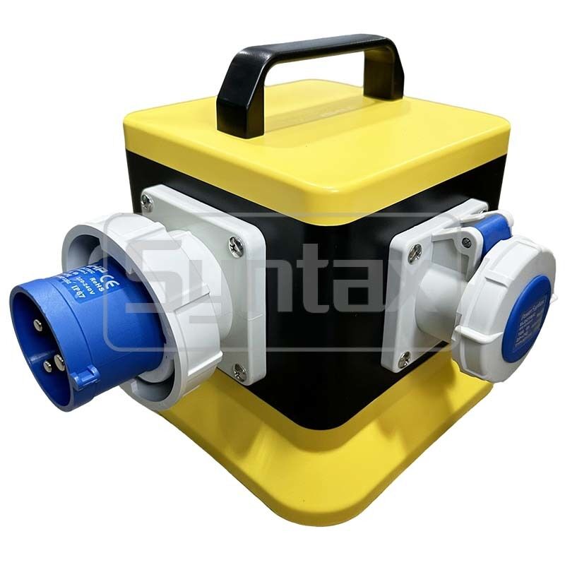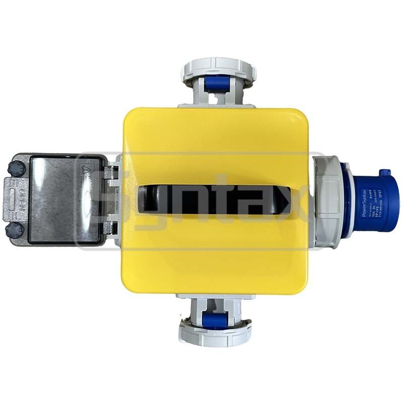 صندوق توزيع صناعي مقاوم للماء IP67 من Syntax MZ6صندوق توزيع محمولصندوق أصفر وأسود خارجي 32 أمبير/3 أطراف أحادي الطور 230 فولت 20*20*21.5 سم