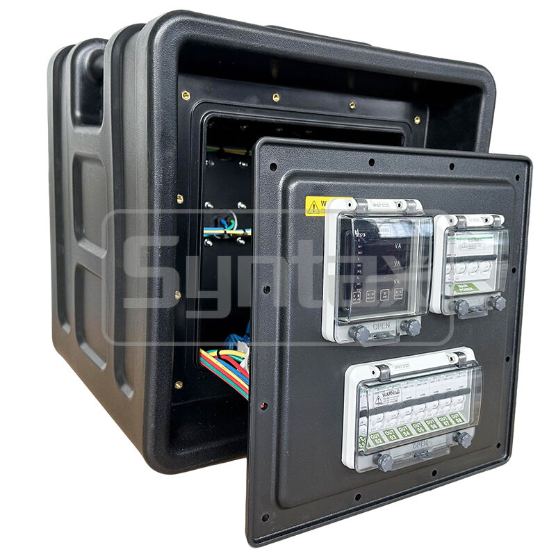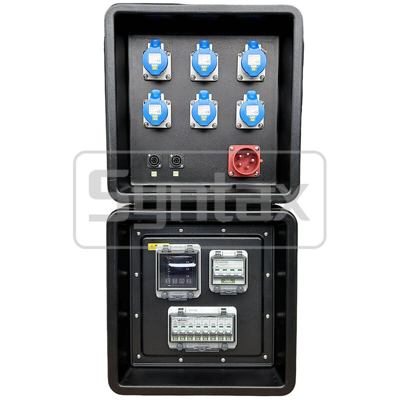 | المقطع الخارجي 1 | 6 × 3P 16A 220V IP44 المقابس المثبتة على اللوحة ، محمية بواسطة 6 × 1P 16A MCBs |
