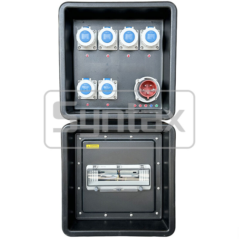 1 × 5P 32A 400V IP67 لوحة مثبتة مدخل، محمية بواسطة 1 × 4P 32A MCB |