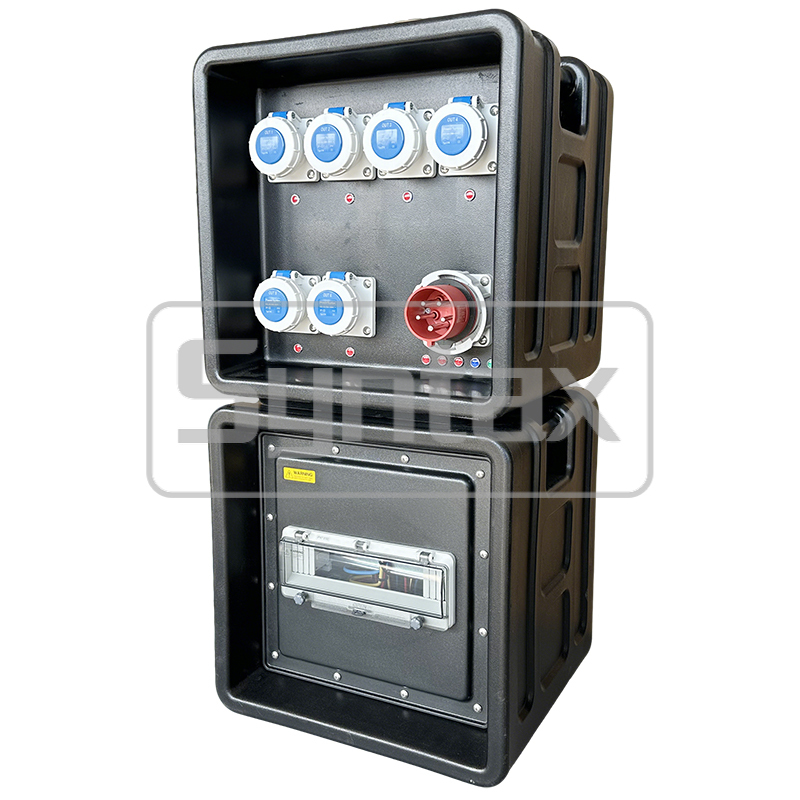 | المُكسر الخارجي | 6 × 3P 16A 220V IP67 المقابس المثبتة على اللوحة ، محمية بواسطة 6 × 1P 16A MCBs |