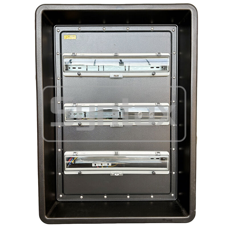 | الخارج 7-12 | 6×3P 32A 220V مقابس مثبتة على اللوحة IP67، محمية بواسطة 6×1P+N 32A 30mA RCBOs |