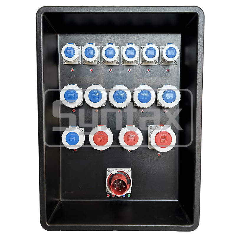 | الخارج 16 | 1×5P 63A 400V مقبس مثبت على اللوحة IP67، حلقة مرور (بدون حماية) |