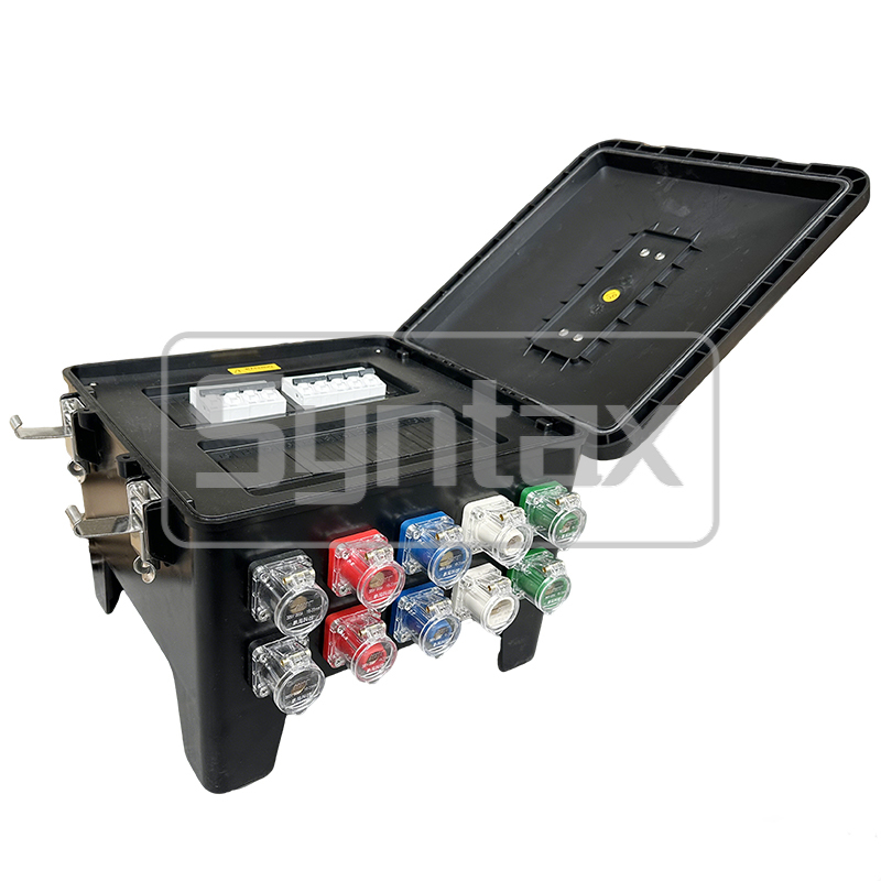 | العلامات التجارية للمكونات | مربع التوزيع بواسطة Syntax ؛ المقابس الصناعية والمقابس بواسطة PowerSyntax ؛ المكسرات بواسطة Schneider |